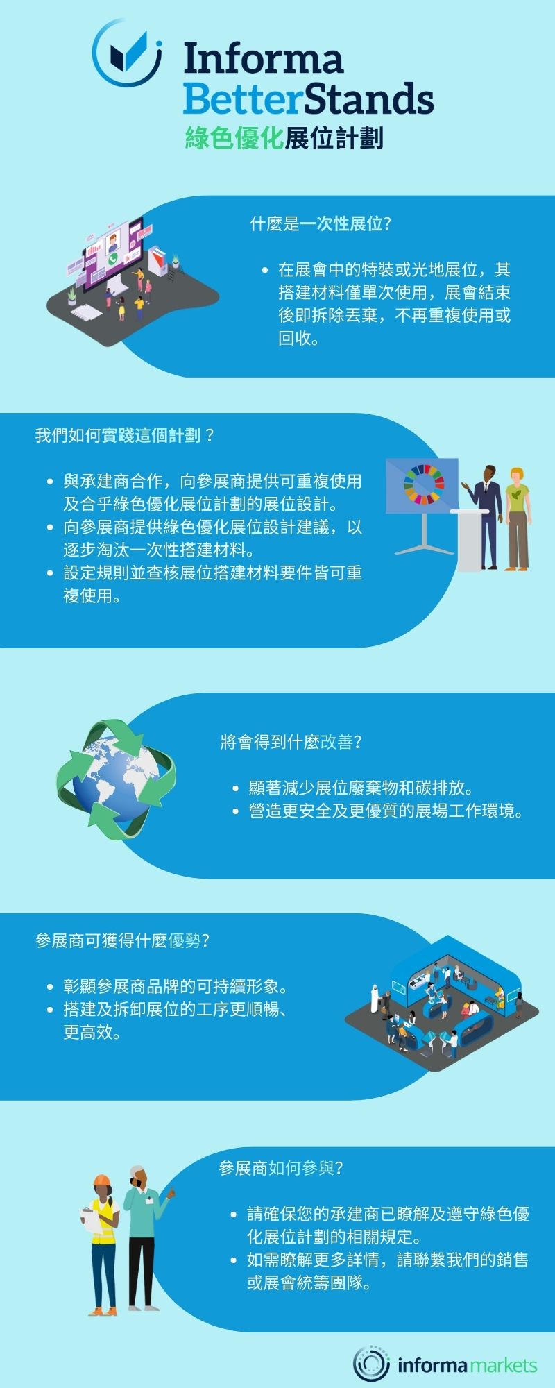 我們確信綠色優化展位的推廣,將使參展商在活動中獲得更便捷、更安全、維繫品質及減少廢棄物的友善環境體驗。
